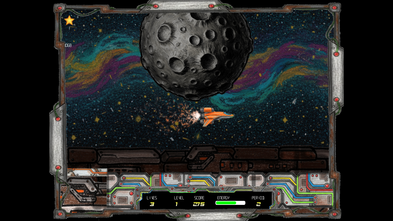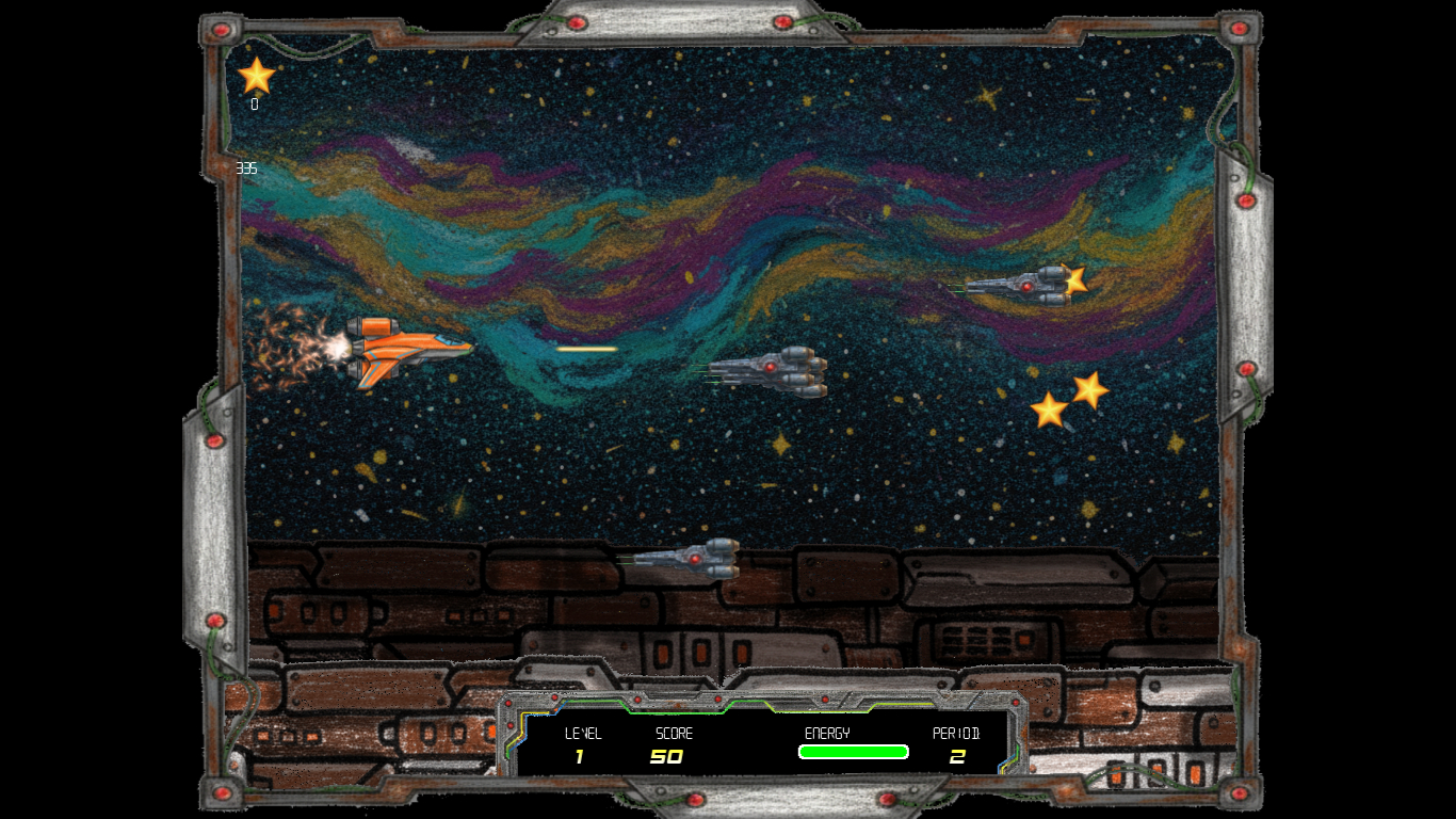 Crayon Galaxy is a classic R-Type like shoot'em up game with 21 levels and some pseudo-3D sub-docking games. Your task is destroy all the enemies and collect enough stars to fly to the next level.
